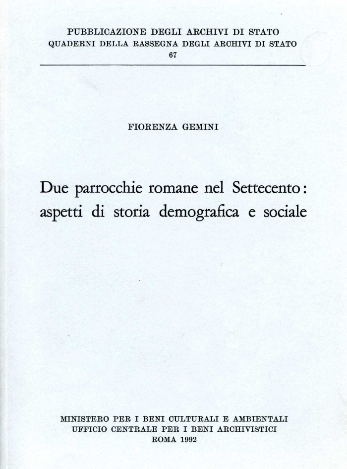 Disponibile online: Due parrocchie Romane nel Settecento: aspetti di storia demografica e sociale,