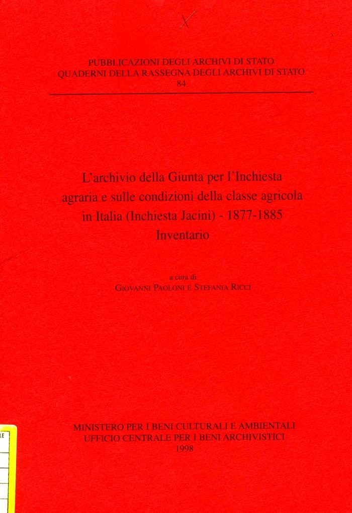 Disponibile online: L'archivio della Giunta per l'Inchiesta agraria e sulle condizioni della classe agricola in Italia (Inchiesta Jacini) -1877-1885. Inventario