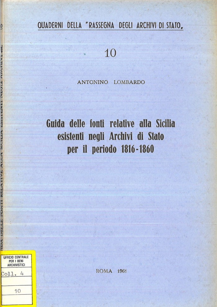 Biblioteca Digitale | Guida delle Fonti relative alla Sicilia esistenti negli Archivi di Stato per il periodo 1816-1860