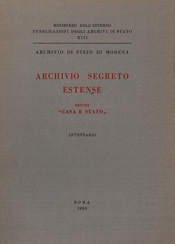 Disponibile online: Archivio segreto estense. Sezione "Casa e Stato". Inventario, Roma, 1953