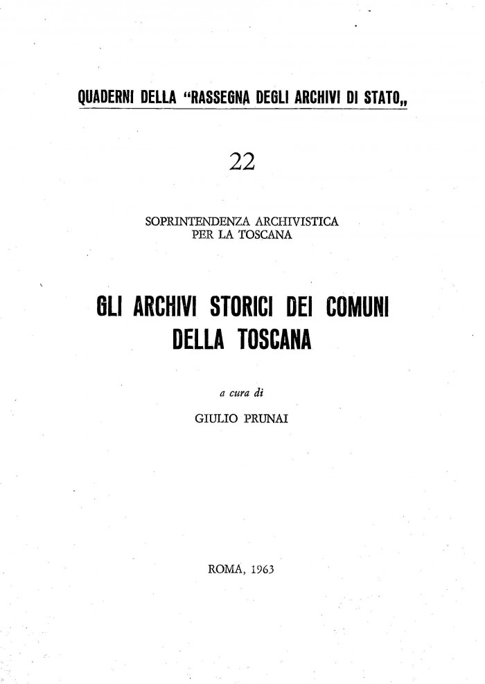 Disponibile online: Gli archivi storici dei comuni della Toscana, Roma, 1963