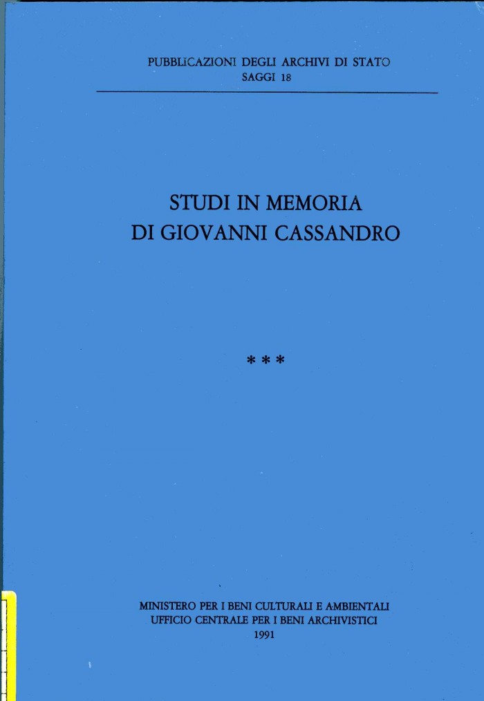 Disponibile online: Studi in memoria di Giovanni Cassandro, tomo III, Roma, 1991