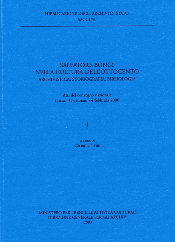 Saggi 76: Salvatore Bongi nella cultura dell'Ottocento. Archivistica, storiografia, bibliologia. Atti del convegno nazionale, Lucca, 31 gennaio - 4 febbraio 2000
