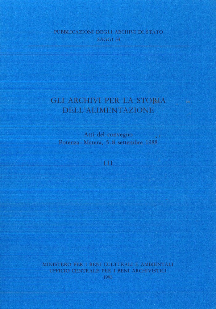 Gli archivi per la storia dell'alimentazione. Atti del convegno, Potenza-Matera, 5-8 settembre 1988