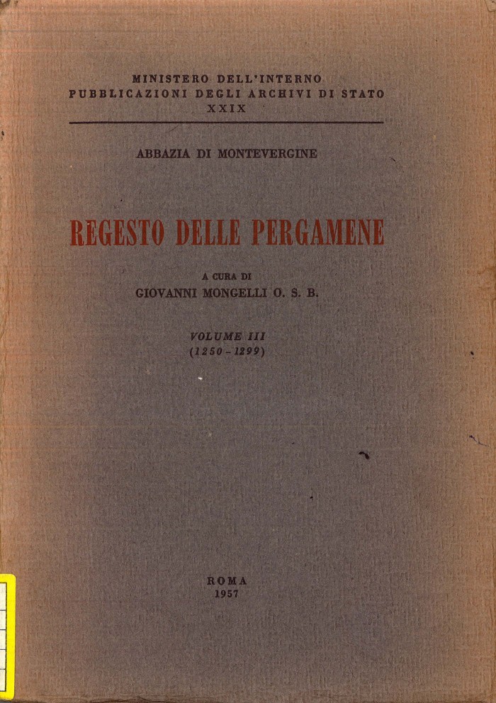 Disponibile online: Abbazia di Montevergine: (1250-1299), Regesto delle pergamene,