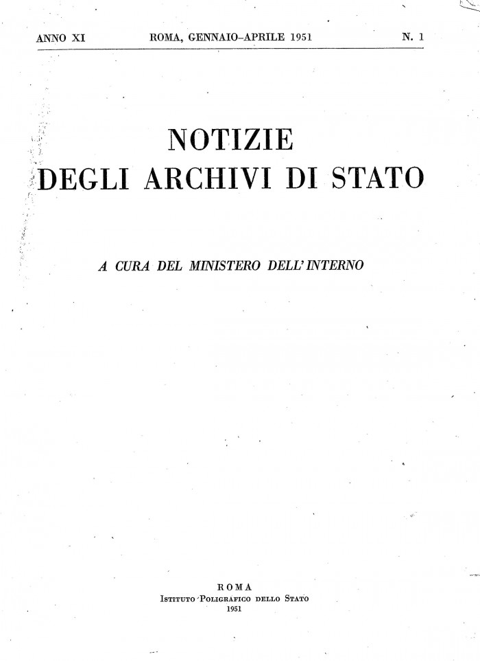 Disponibile online: Notizie degli Archivi di Stato, Ministero dell'Interno, anno XI, Roma, 1951