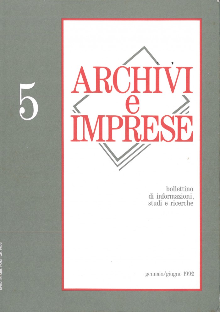 Disponibile online: Archivi e Imprese. Bollettino di informazioni, studi e ricerche, n. 5/1992