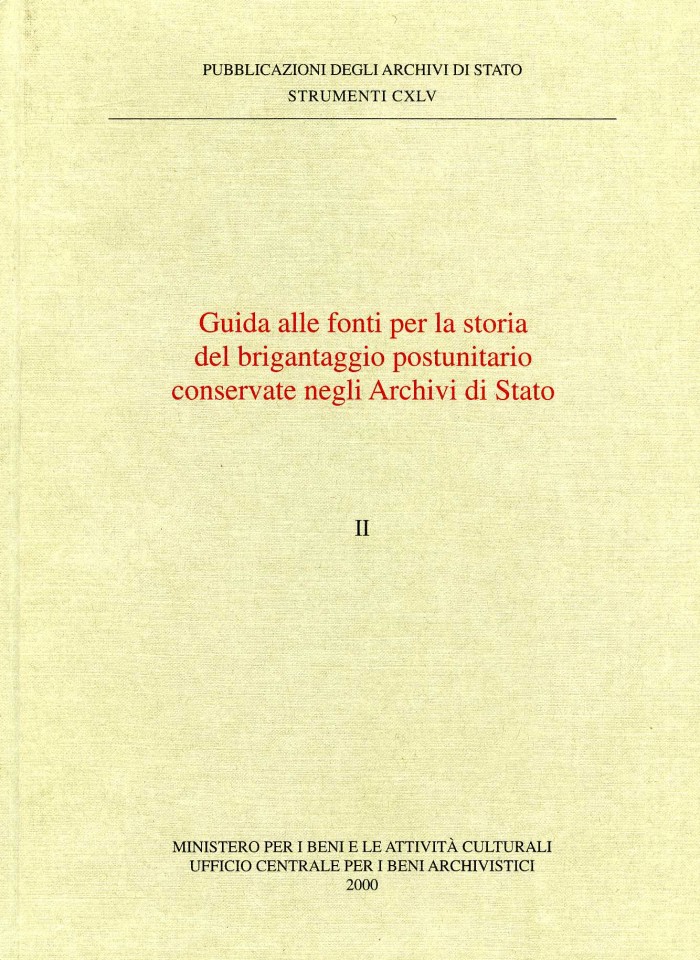 Disponibile online: Guida alle fonti per la storia del brigantaggio postunitario conservate negli Archivi di Stato, volume II