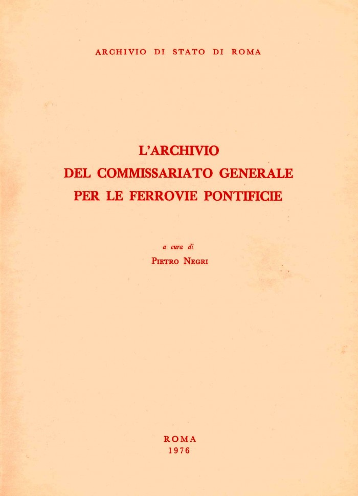 Disponibile online: Archivio di Stato di Roma, L'archivio del Commissariato generale per le ferrovie pontificie, a cura di Pietro Negri, Roma, 1976