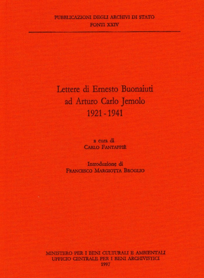 Disponibile online: Lettere di Ernesto Buonaiuti ad Arturo Carlo Jemolo 1921-1941, Roma, 1997